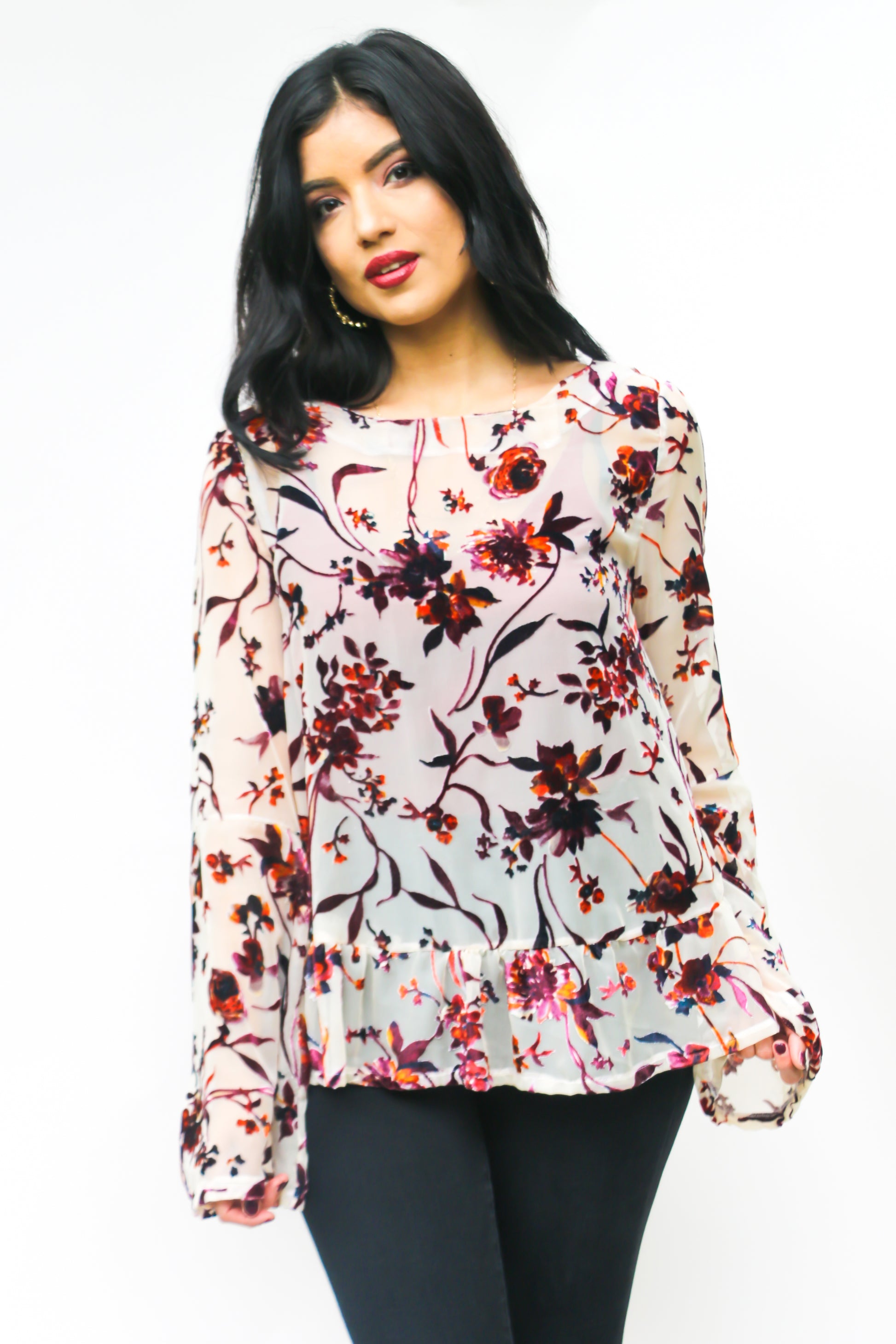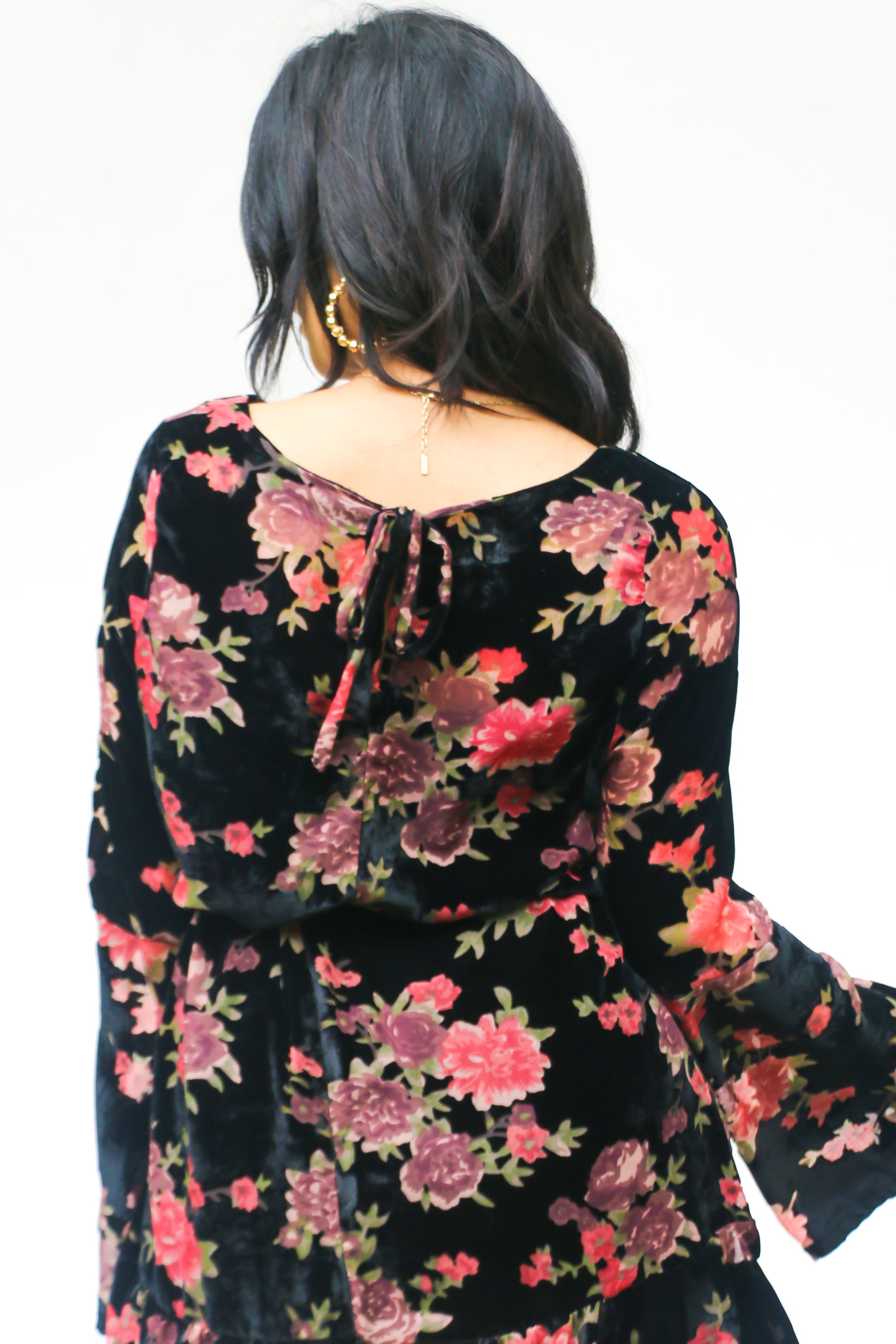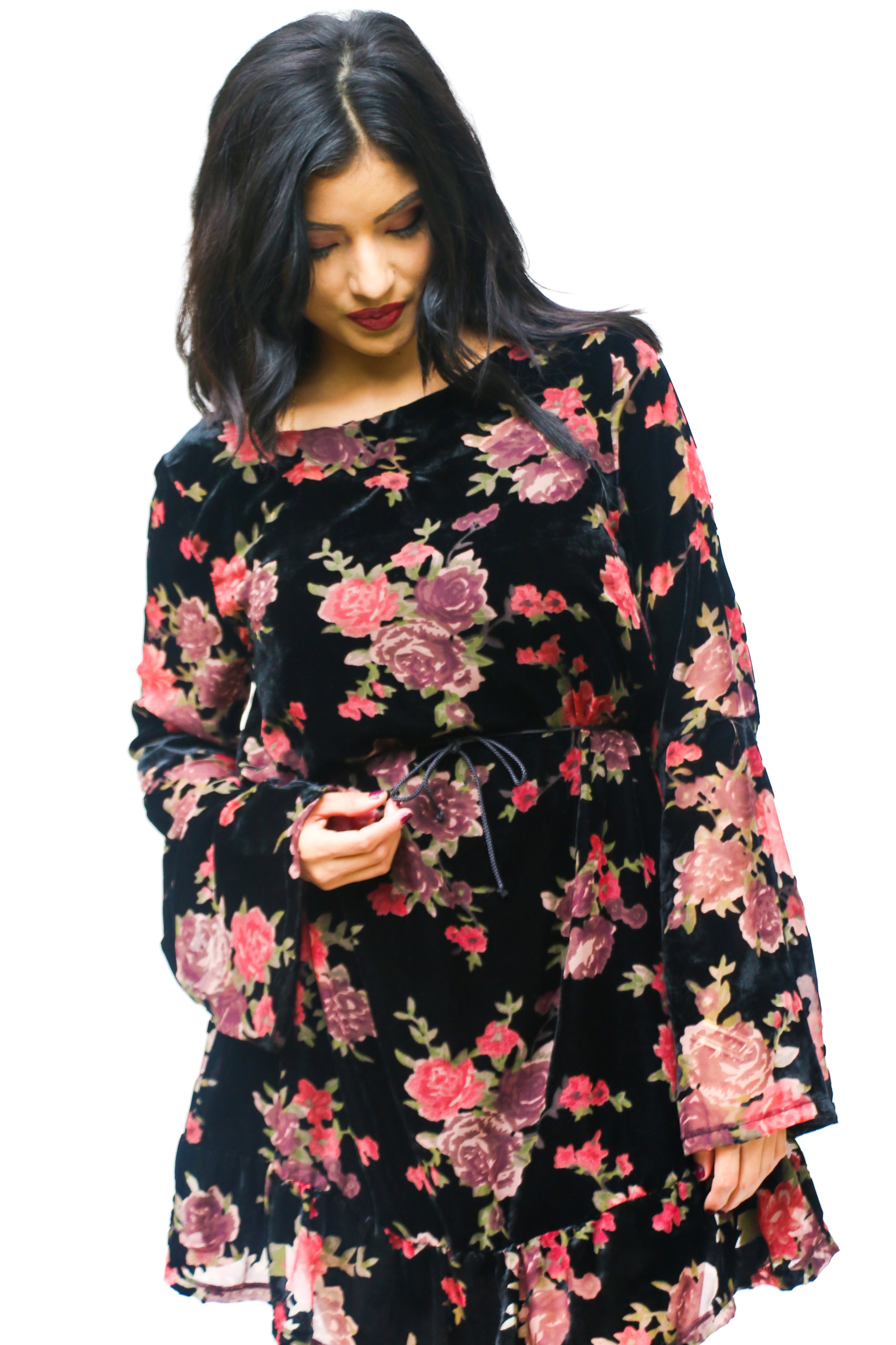 The Mariah pattern is a 2-in-1 feminine blouse/dress with a loose-fit featuring a tie-back closure, extended trumpet sleeves, and a gorgeous ruffled hem.