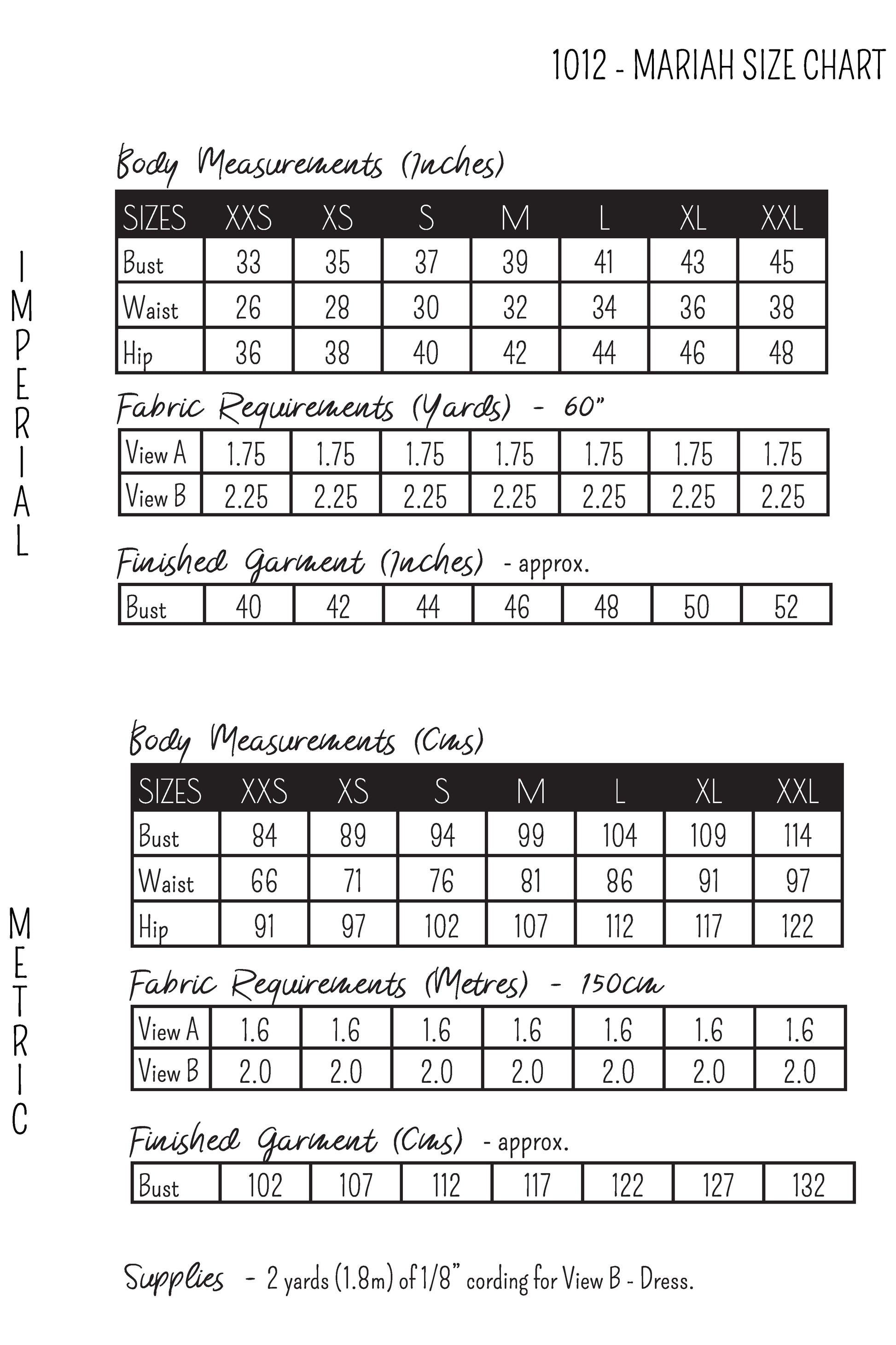 Sizing: XXS - XXL (view our size chart and fabric requirements, here).